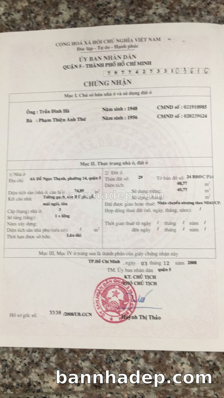 Bán nhà 6A Đỗ Ngọc Thạnh phường 01 quận 5