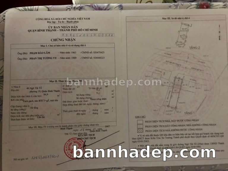 Bán nhà 46 Ngô Tất Tố phường 01 quận Bình Thạnh