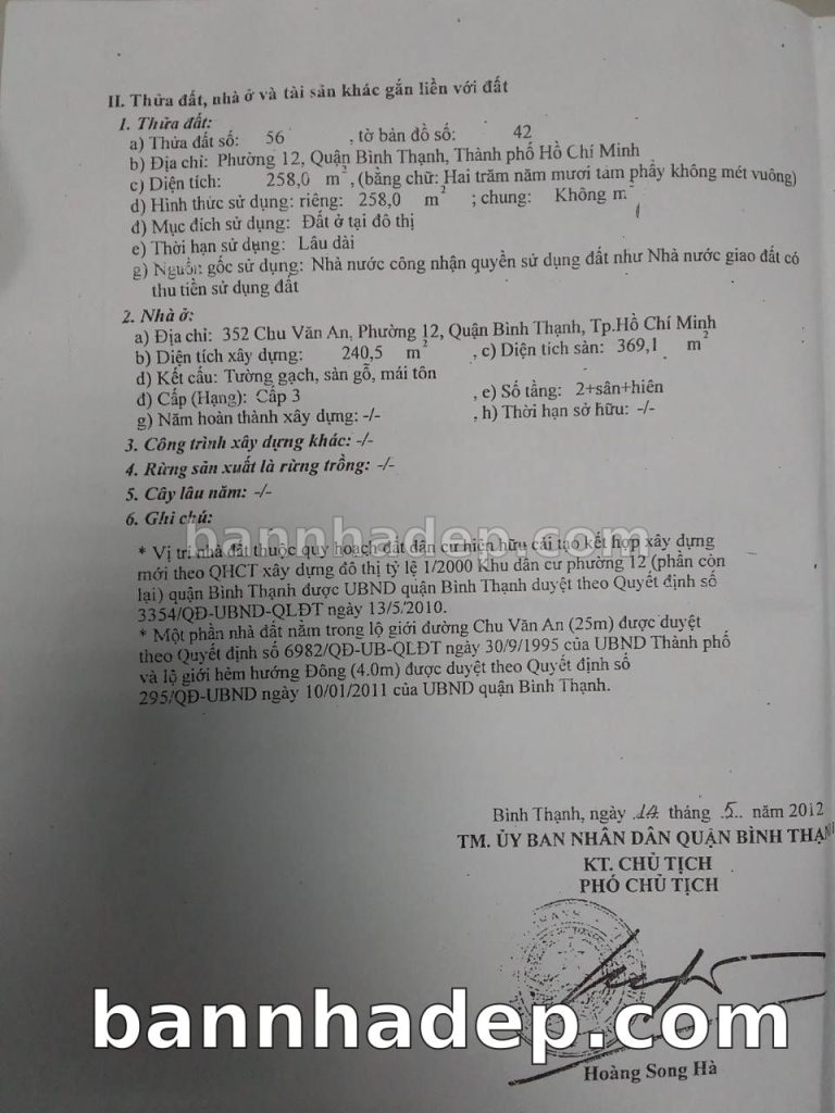 Bán nhà 352 Chu Văn An phường 01 quận Bình Thạnh
