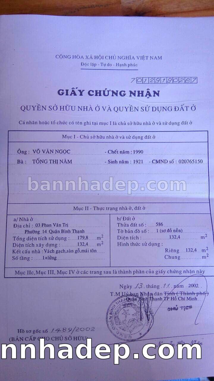 Bán nhà 3 Phan Văn Trị phường 01 quận Bình Thạnh