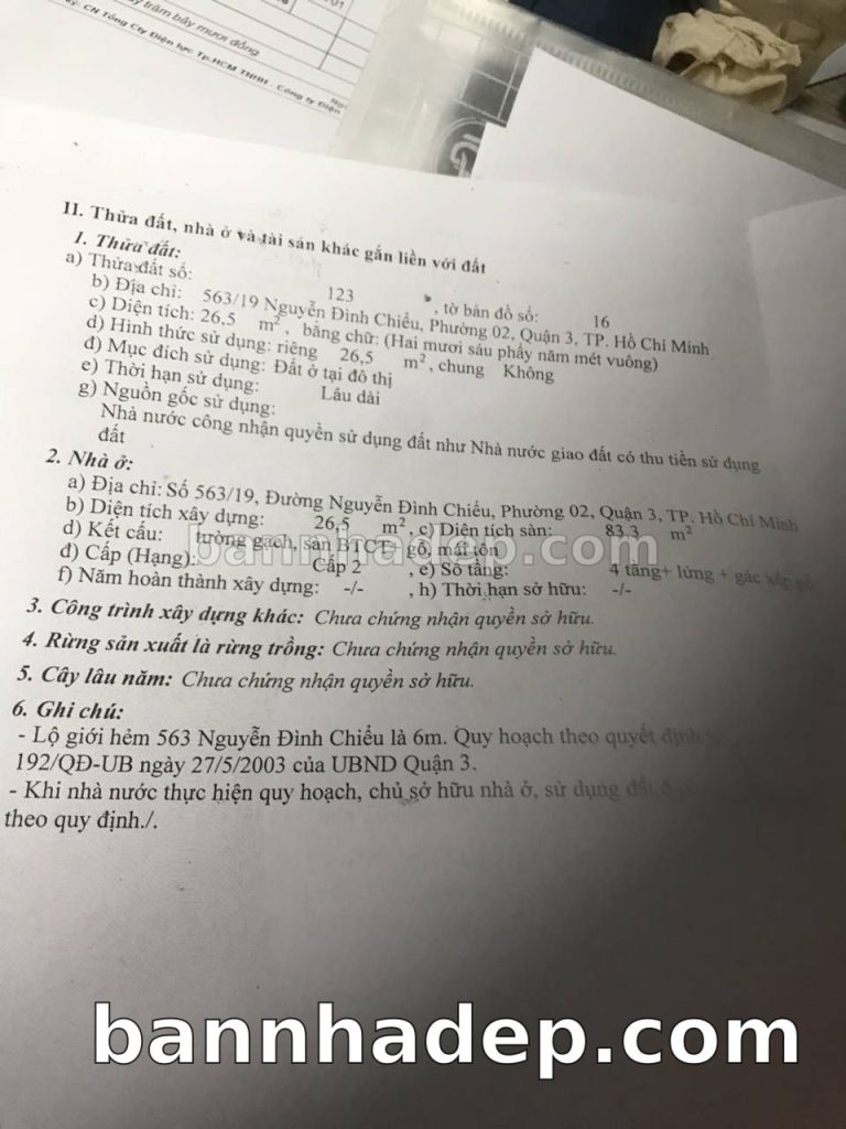 Bán nhà 563/49 Nguyễn Đình Chiểu phường 02 quận 3