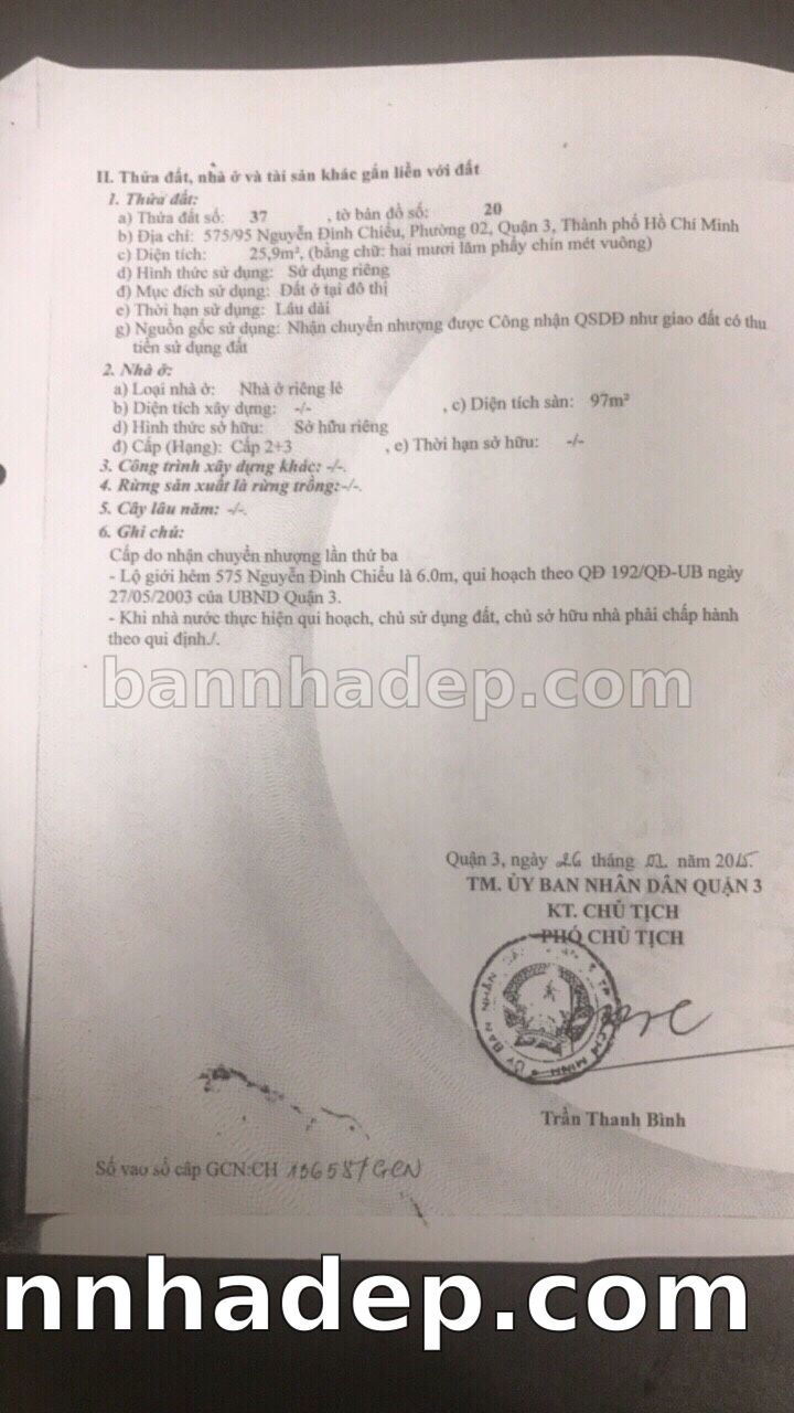 Bán nhà 575/97 Nguyễn Đình Chiểu phường 02 quận 3