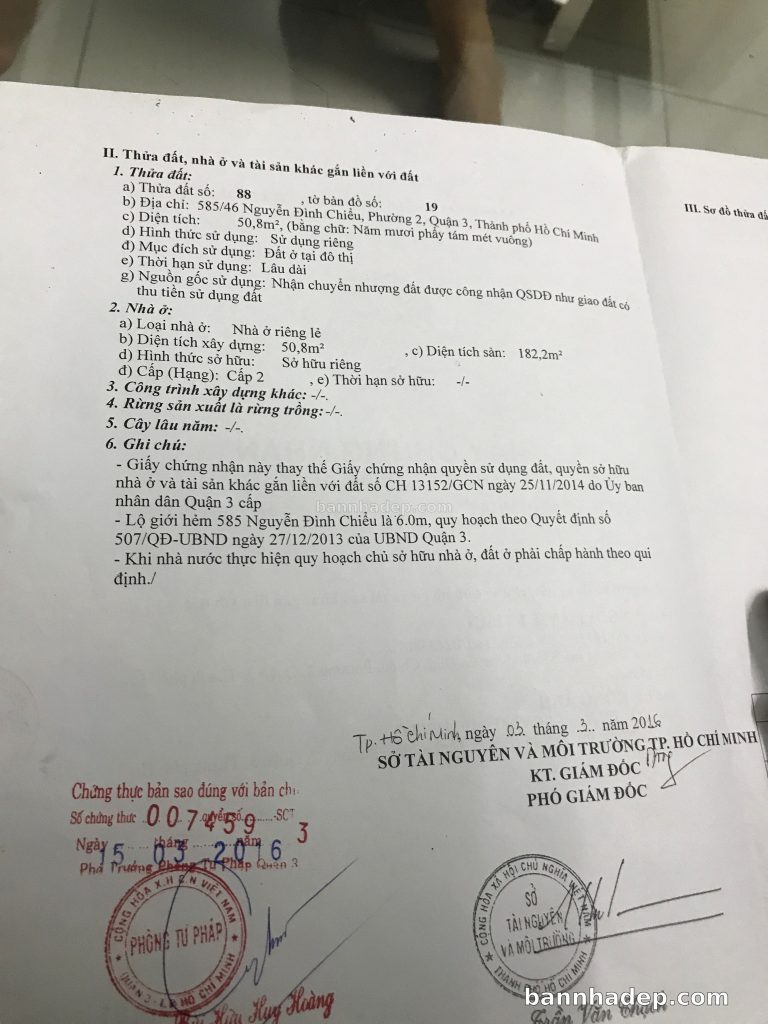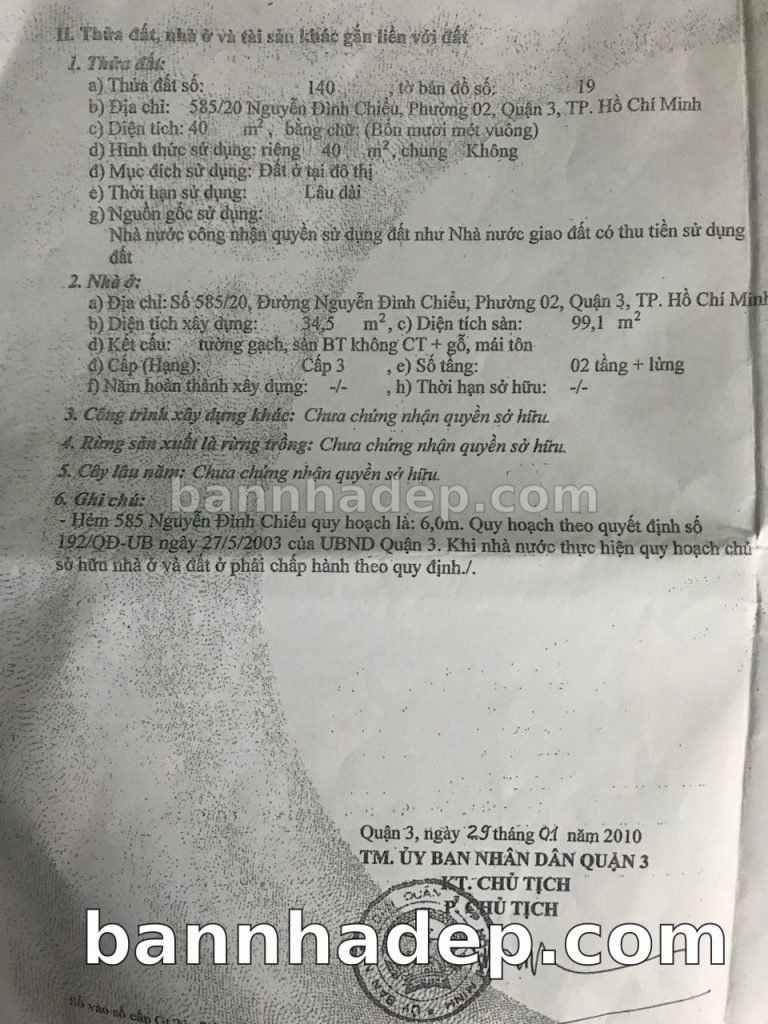 Bán nhà 585/46 Nguyễn Đình Chiểu phường 02 quận 3