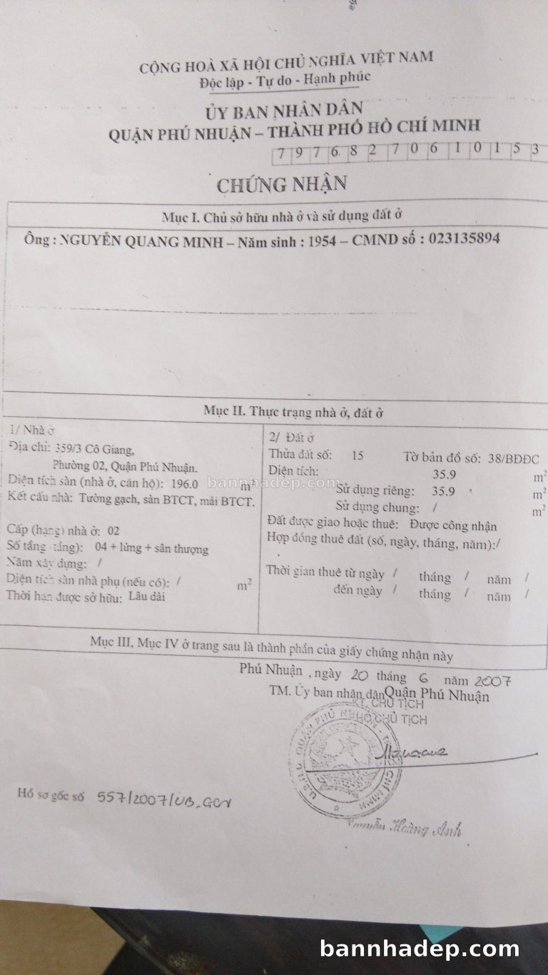Bán nhà 37 Phan Xích Long phường 02 quận Phú Nhuận