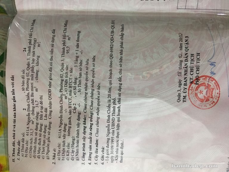 Bán nhà 611A Nguyễn Đình Chiểu phường 02 quận 3