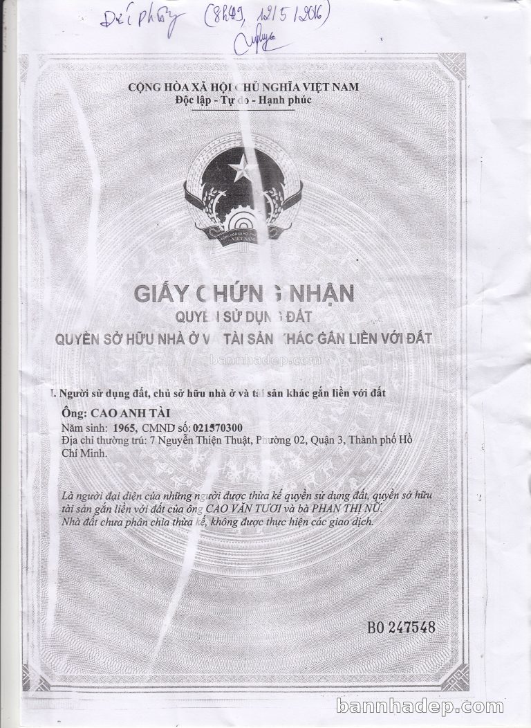 Bán nhà 68 Nguyễn Thiện Thuật phường 02 quận 3