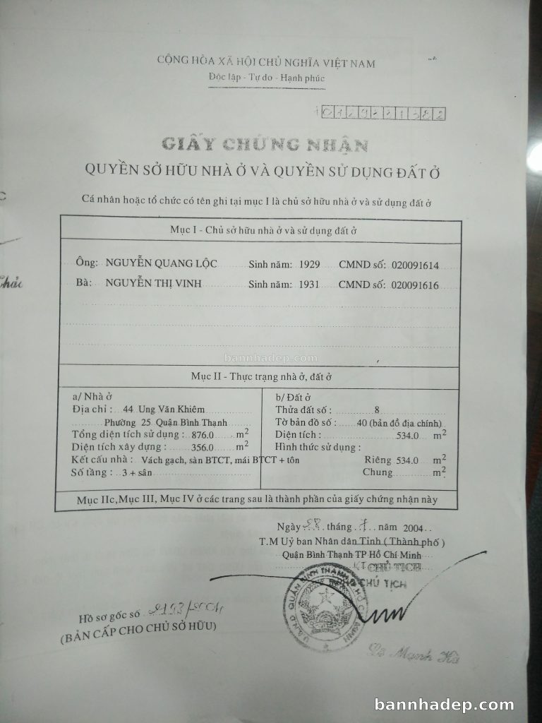 Bán nhà 44 Ung Văn Khiêm phường 02 quận Bình Thạnh