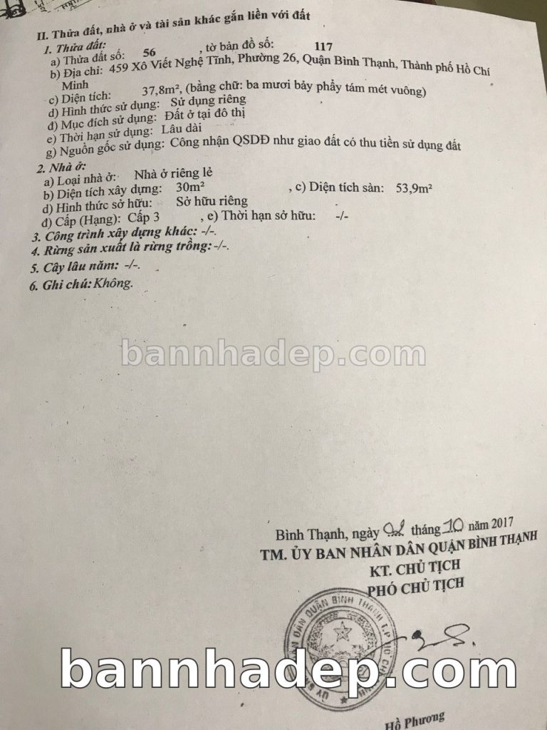 Bán nhà 459 Xô Viết Nghệ Tĩnh phường 02 quận Bình Thạnh