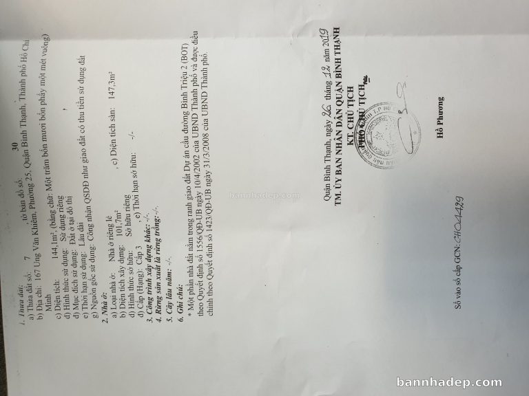 Bán nhà 167 Ung Văn Khiêm phường 02 quận Bình Thạnh