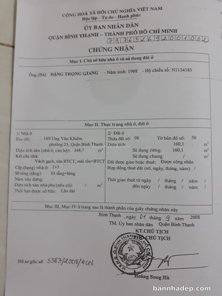 Bán nhà 169 Ung Văn Khiêm phường 02 quận Bình Thạnh