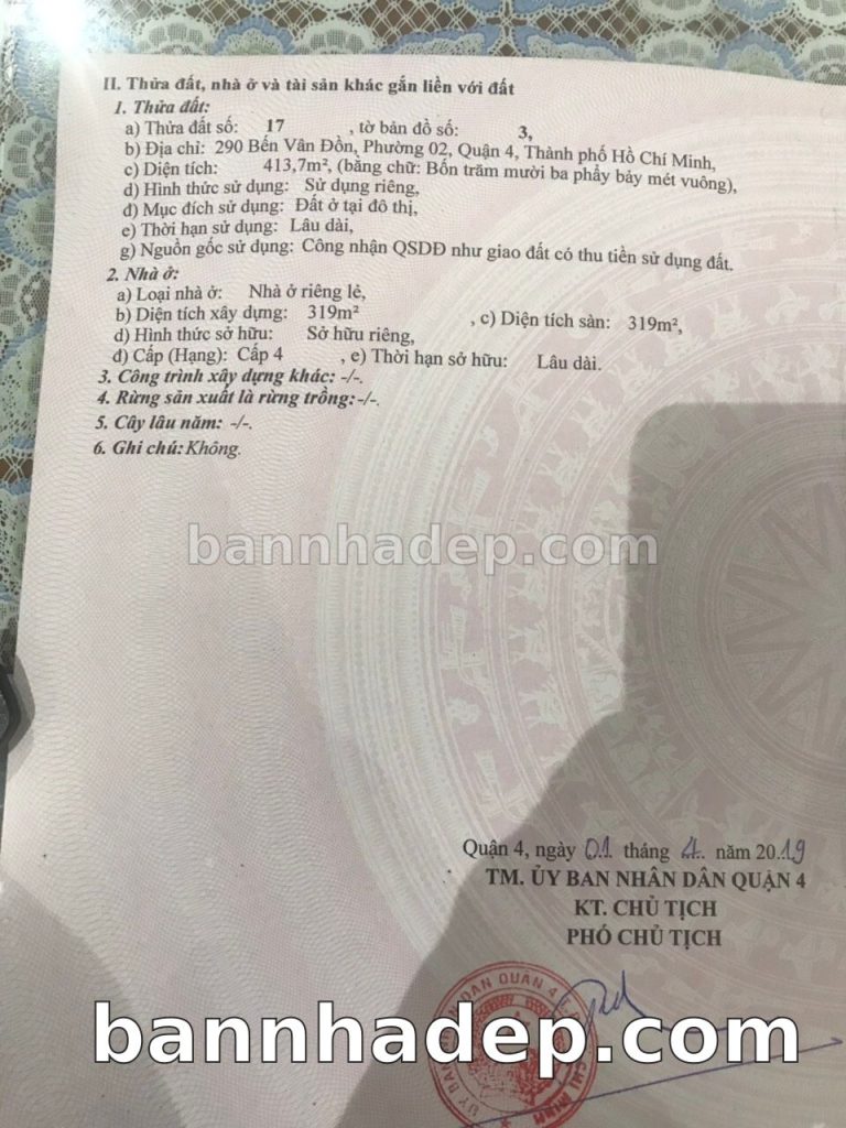 Bán nhà 290 Bến Vân Đồn phường 02 quận 4