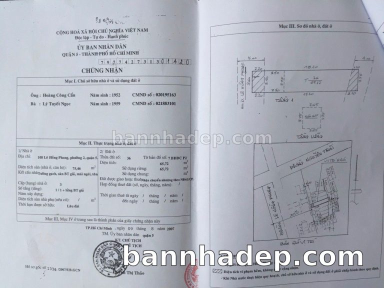 Bán nhà 108 Lê Hồng Phong phường 02 quận 5