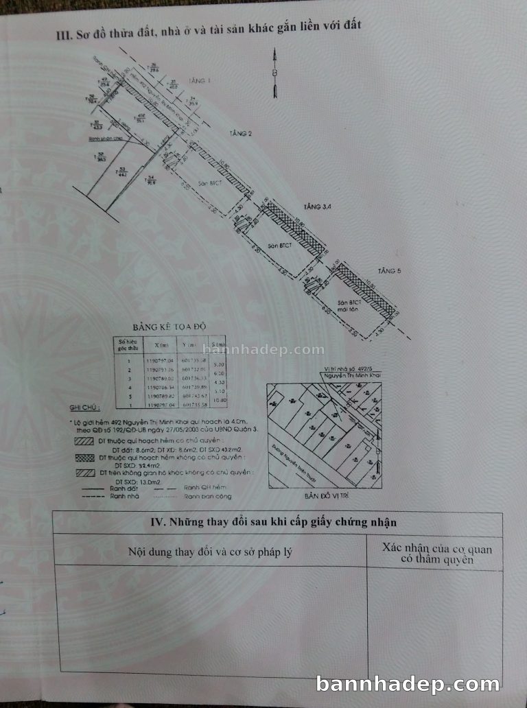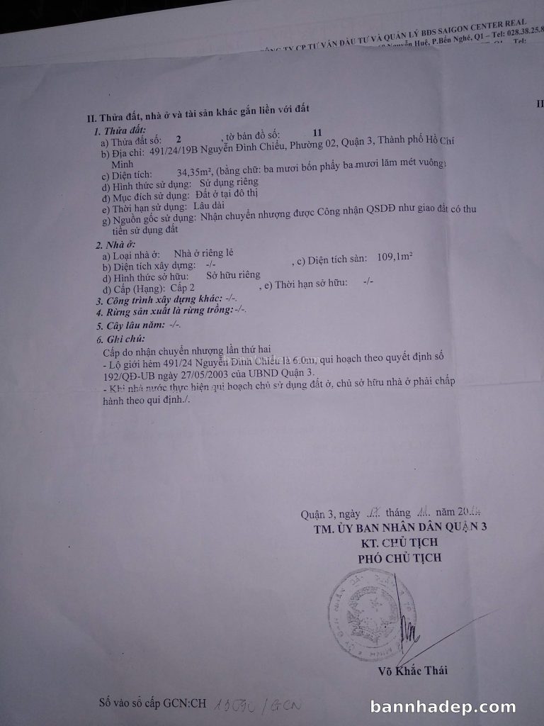 Bán nhà 492/2 Nguyễn Thị Minh Khai phường 02 quận 3