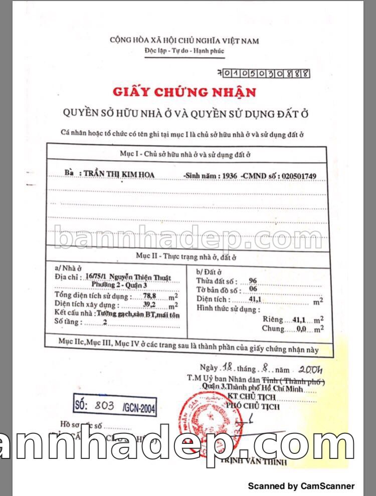 Bán nhà 16/75/1 Nguyễn Thiện Thuật phường 02 quận 3