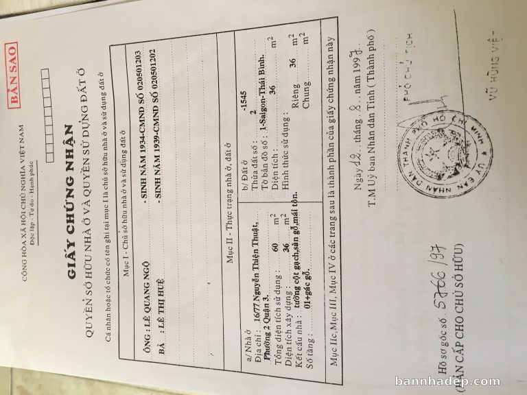 Bán nhà 16/77 Nguyễn Thiện Thuật phường 02 quận 3
