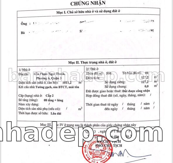 Bán nhà 62 Phạm Ngọc Thạch phường 06 quận 3