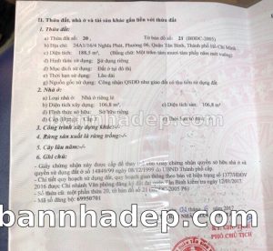 Bán nhà 24A1/16/4 Nghĩa Phát phường 06 quận Tân Bình