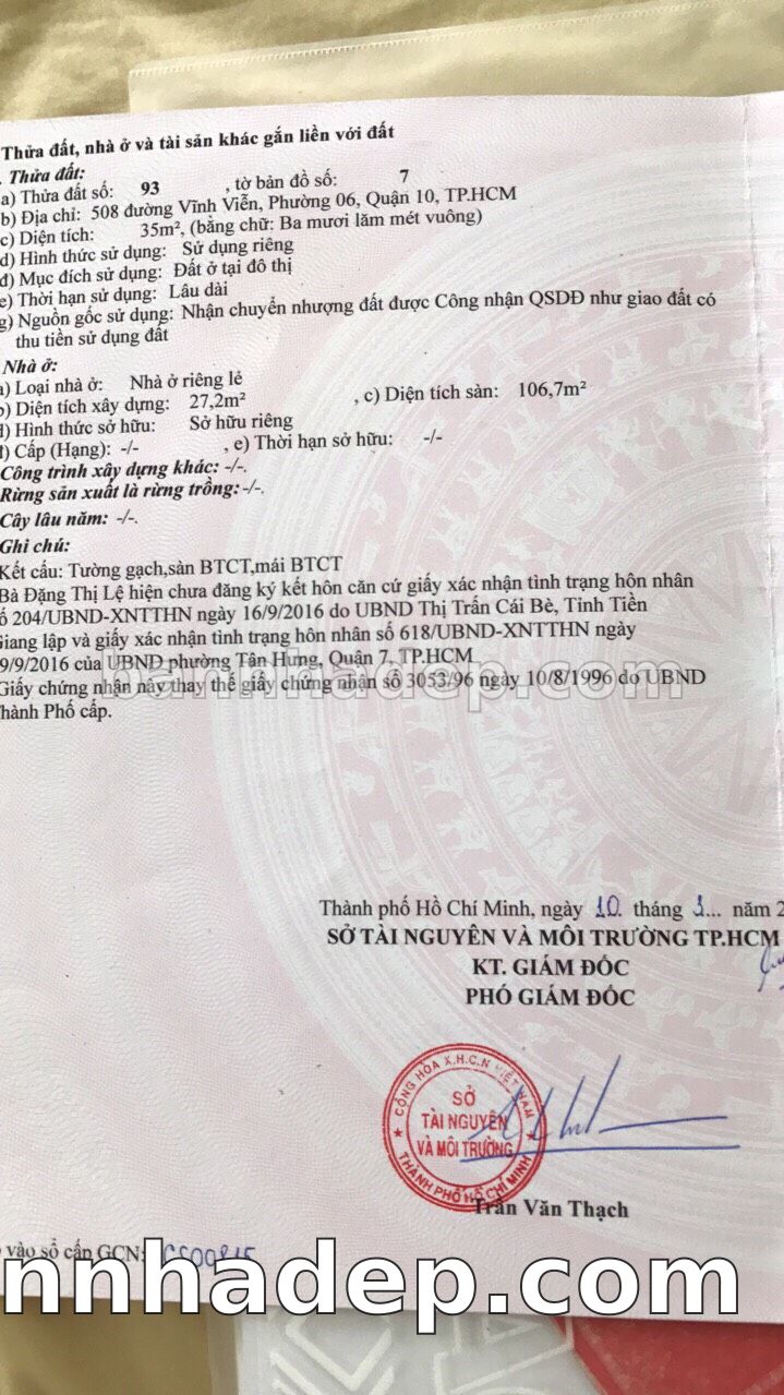 Bán nhà 508 Vĩnh Viễn phường 06 quận 10