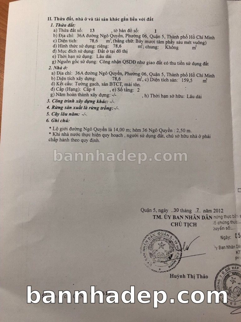 Bán nhà 36A Ngô Quyền phường 06 quận 5