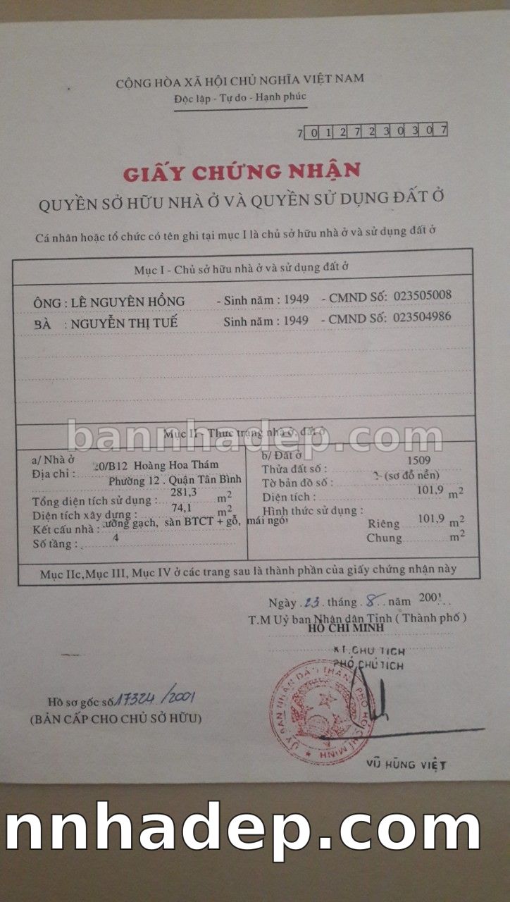 Bán nhà 15 Nguyễn Quang Bích phường 01 quận Tân Bình