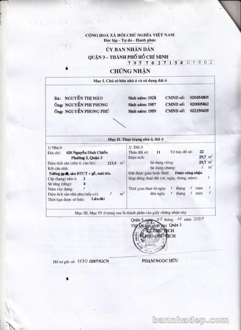 Bán nhà 89 Bàn Cờ phường 03 quận 3