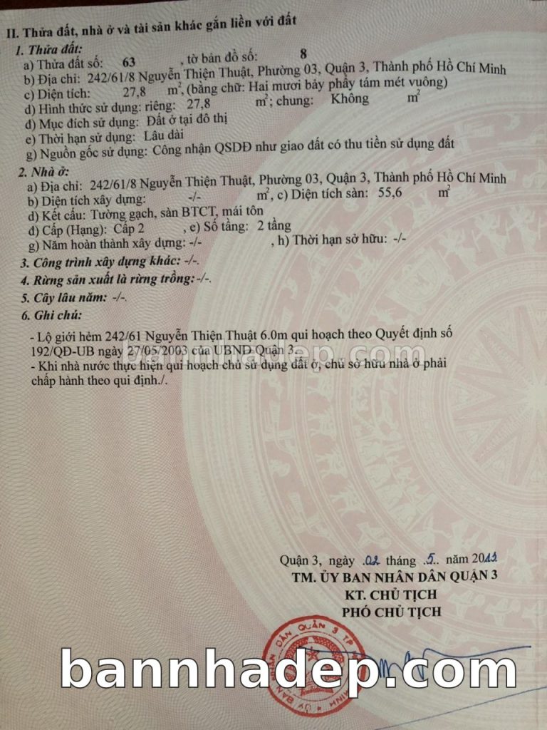 Bán nhà 242/47/38 Nguyễn Thiện Thuật phường 03 quận 3