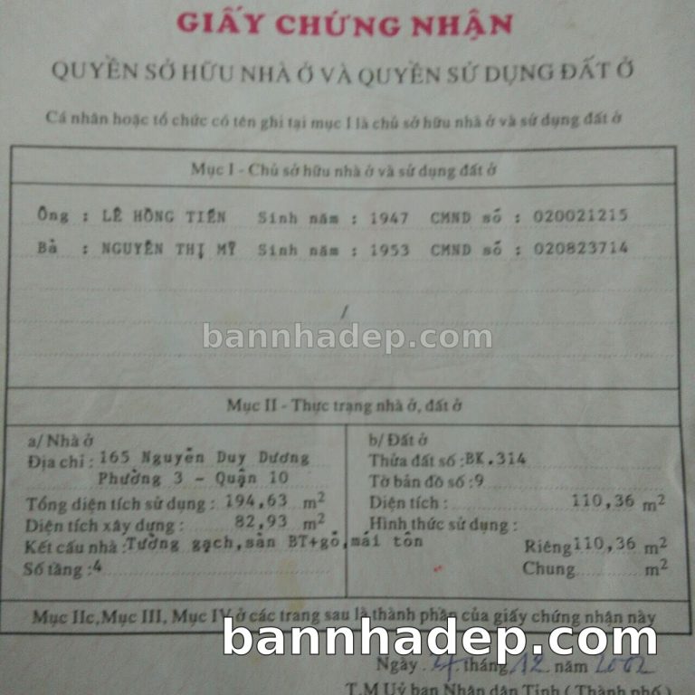 Bán nhà 165 Nguyễn Duy Dương phường 03 quận 10