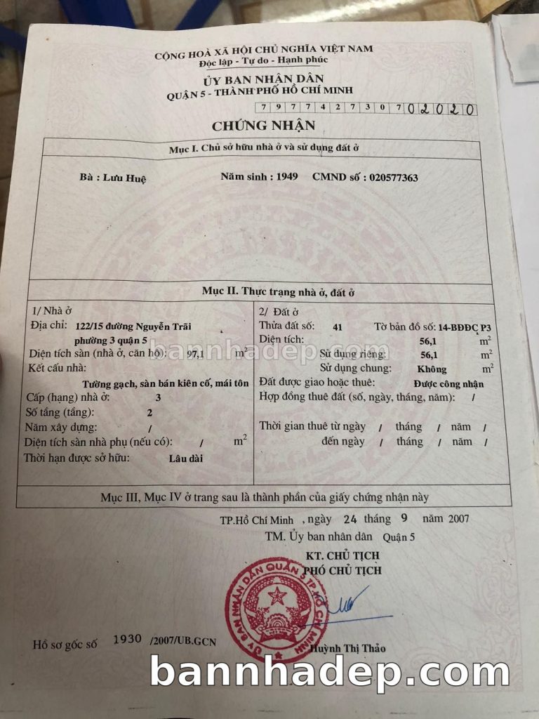 Bán nhà 122/15 đường Nguyễn Trãi phường 03 quận 5