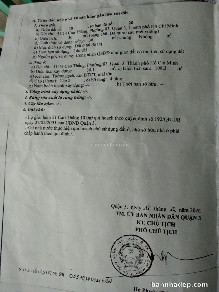 Bán nhà 51/10/6 Cao Thắng phường 03 quận 3