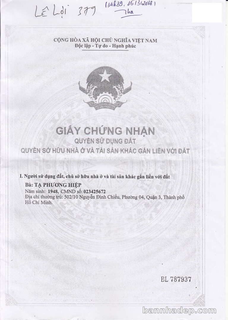 Bán nhà 46/37 Vườn Chuối phường 04 quận 3