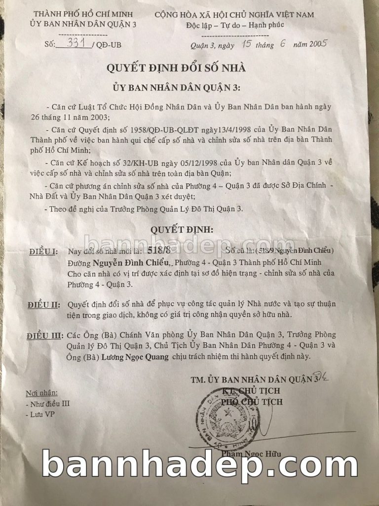 Bán nhà 518/8 Nguyễn Đình Chiểu phường 04 quận 3