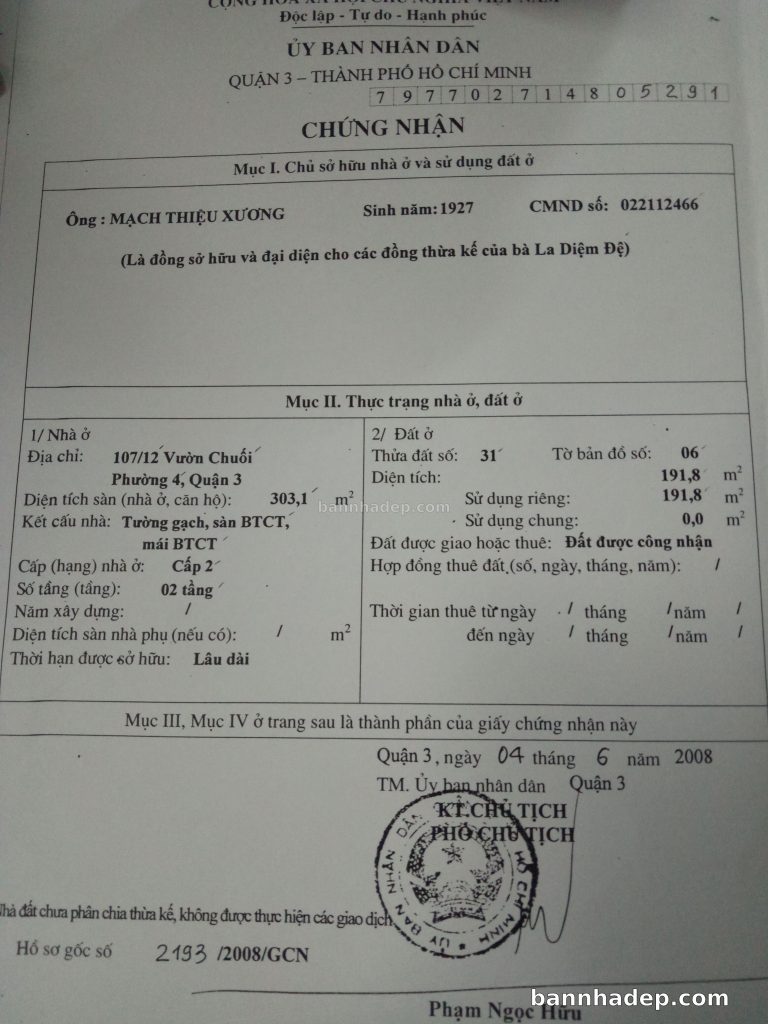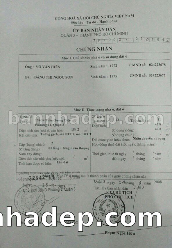 Bán nhà 117 Vườn Chuối phường 04 quận 3