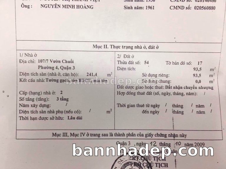 Bán nhà 107/5-7 Vườn Chuối phường 04 quận 3