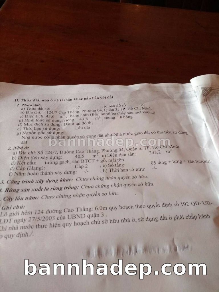 Bán nhà 124/7 Cao Thắng phường 04 quận 3