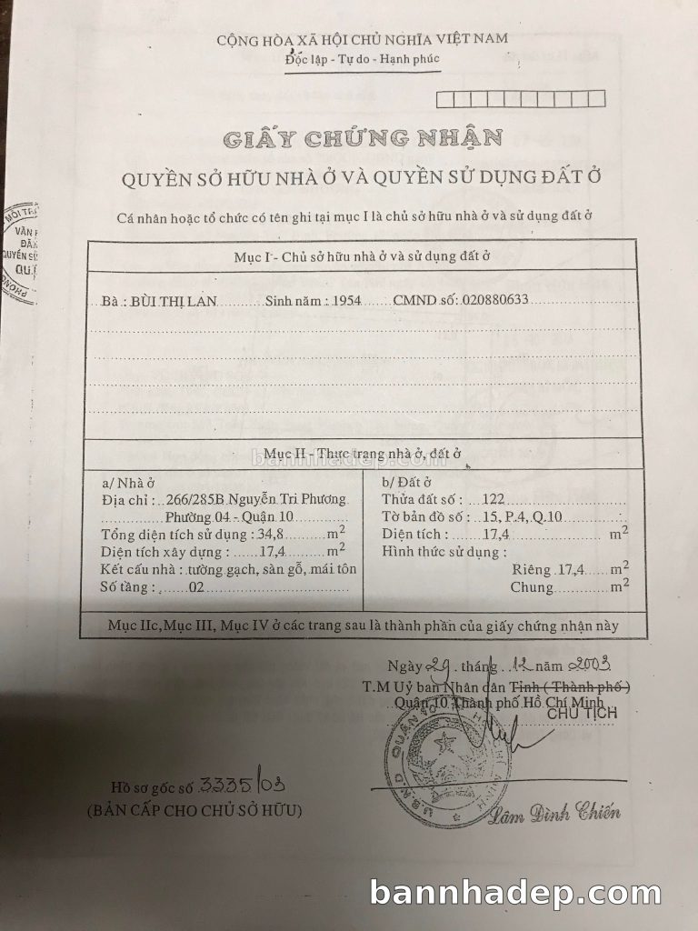Bán nhà 266/285B Nguyễn Tri Phương phường 04 quận 10