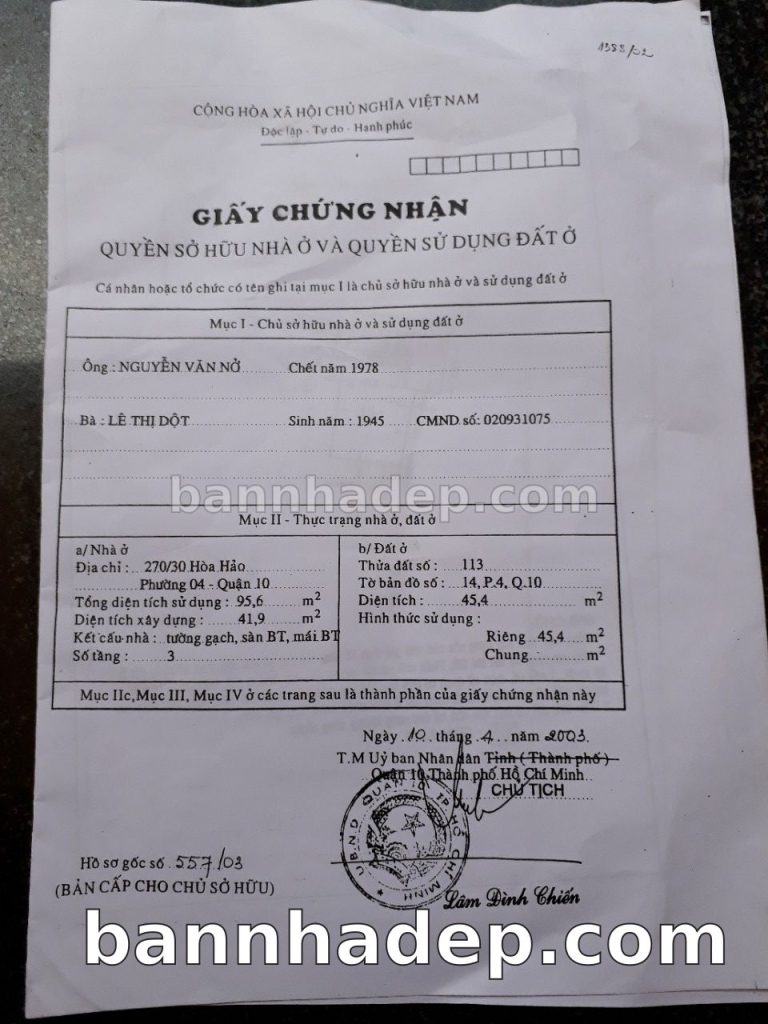 Bán nhà 270/1 Hòa Hảo phường 04 quận 10