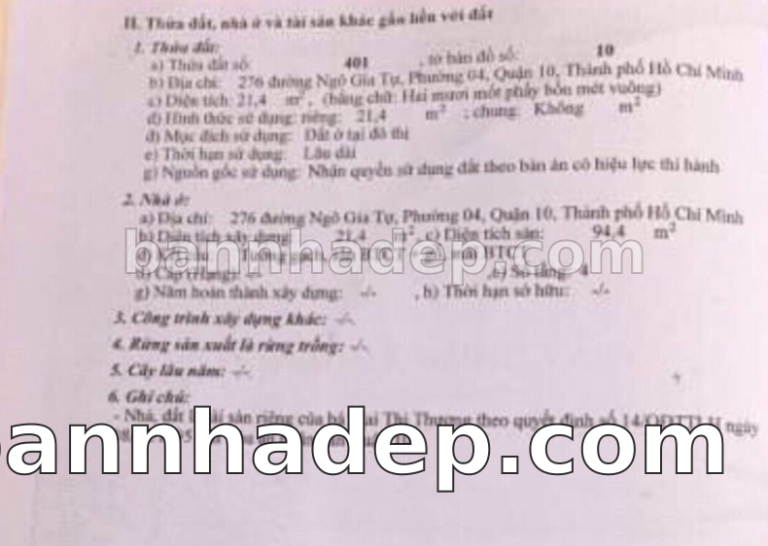 Bán nhà 276 Ngô Gia Tự phường 04 quận 10