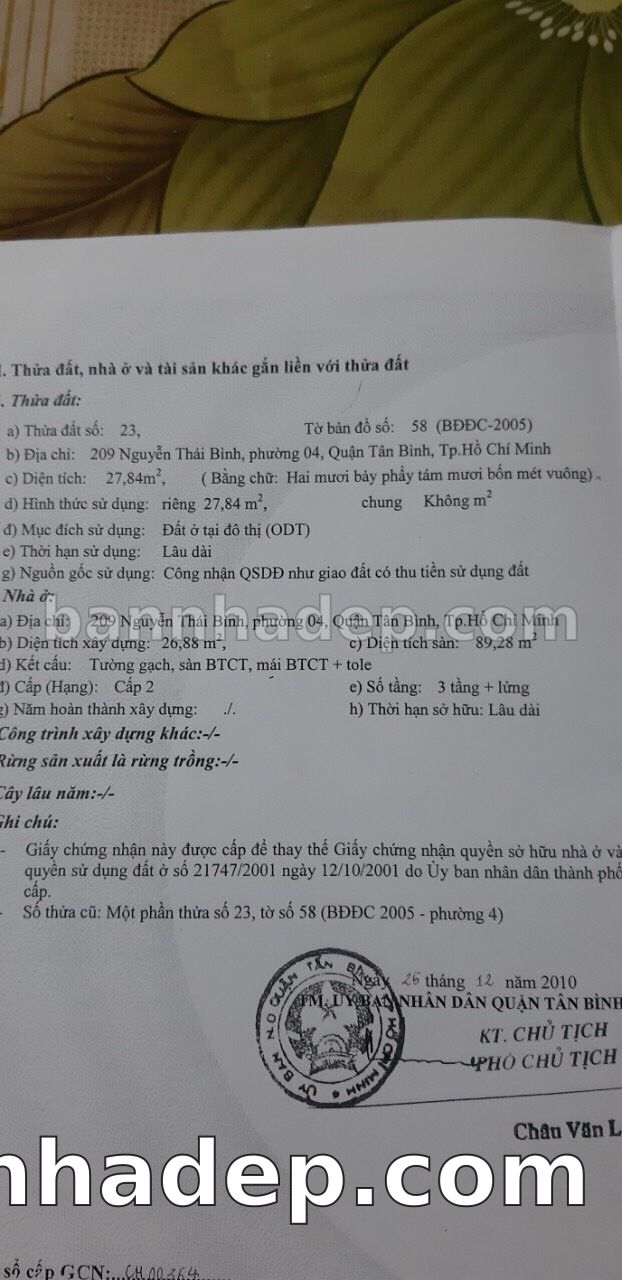 Bán nhà 23 Nguyễn Thái Bình phường 04 quận Tân Bình
