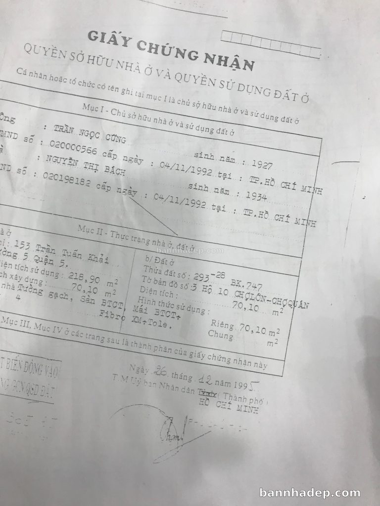 Bán nhà 114 Trần Tuấn Khải phường 05 quận 5