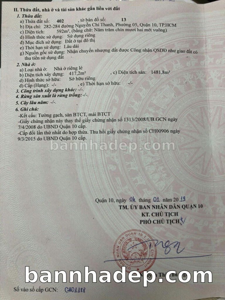 Bán nhà 282-284 Nguyễn Chí Thanh phường 05 quận 5