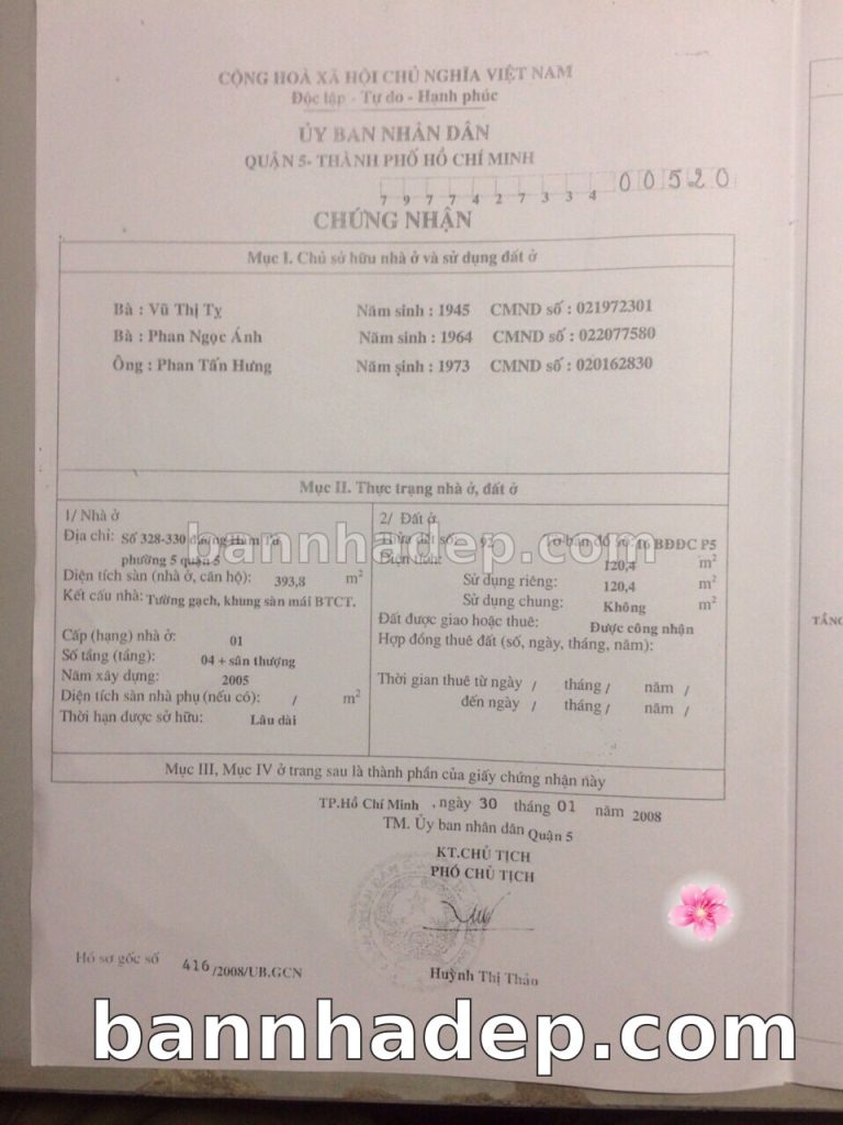 Bán nhà 328-330 Hàm Tử phường 05 quận 5