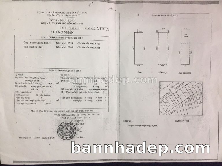 Bán nhà 285 Hùng Vương phường 09 quận 5