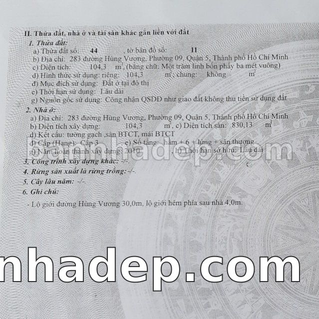 Bán nhà 283 Hùng Vương phường 09 quận 5