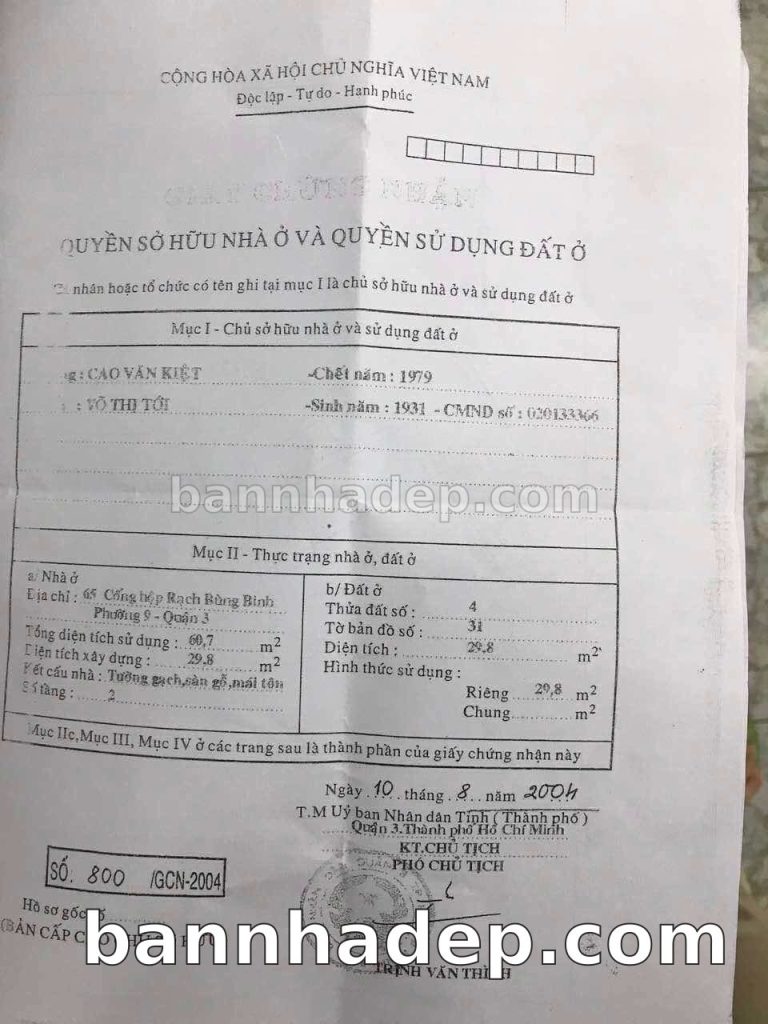 Bán nhà 65 Cống Hộp Rạch Bùng Binh phường 09 quận 3