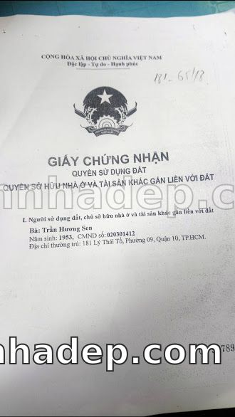 Bán nhà 181 Lý Thái Tổ phường 09 quận 10