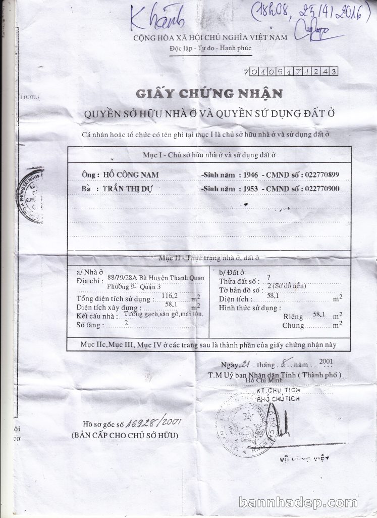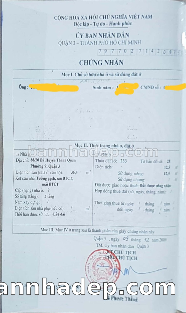 Bán nhà 90 Bà Huyện Thanh Quan phường 09 quận 3