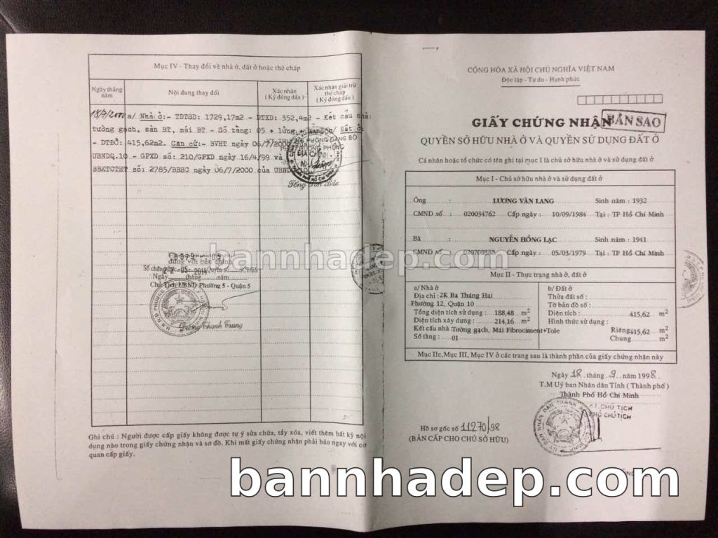 Bán nhà 156 Ba tháng Hai phường 01 quận 10