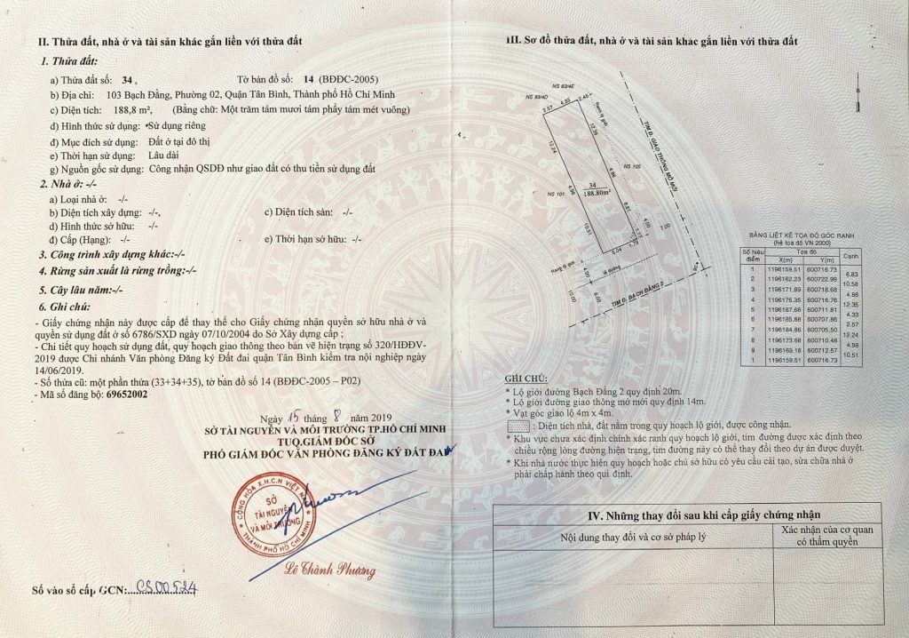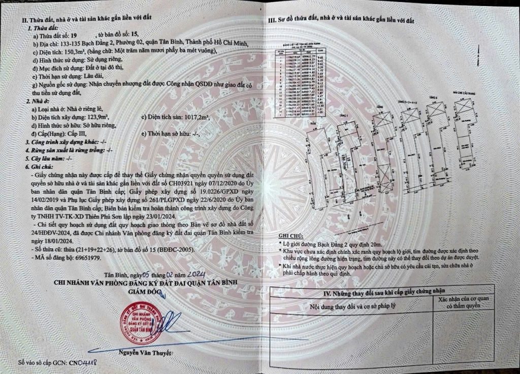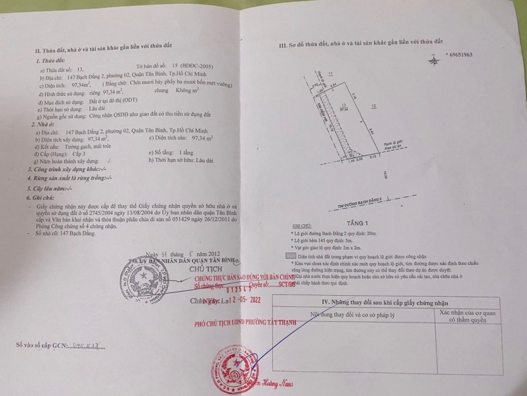Bán nhà 133-135Thửa: 19Tờ: 15 Bạch Đằng 2 phường 2 quận Tân Bình