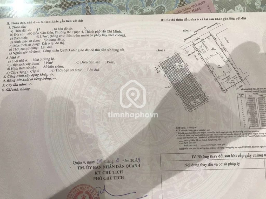 Bán nhà 299-300 Bến Vân Đồn phường 2 quận 4