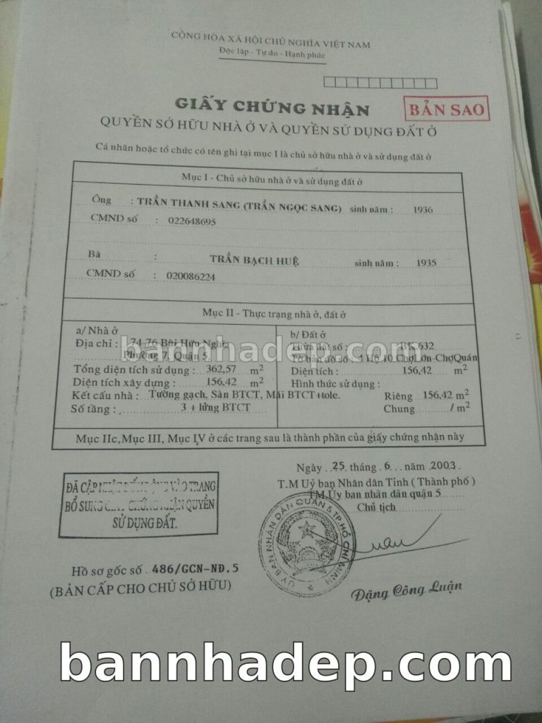 Bán nhà 74-76 Bùi Hữu Nghĩa phường 07 quận 5
